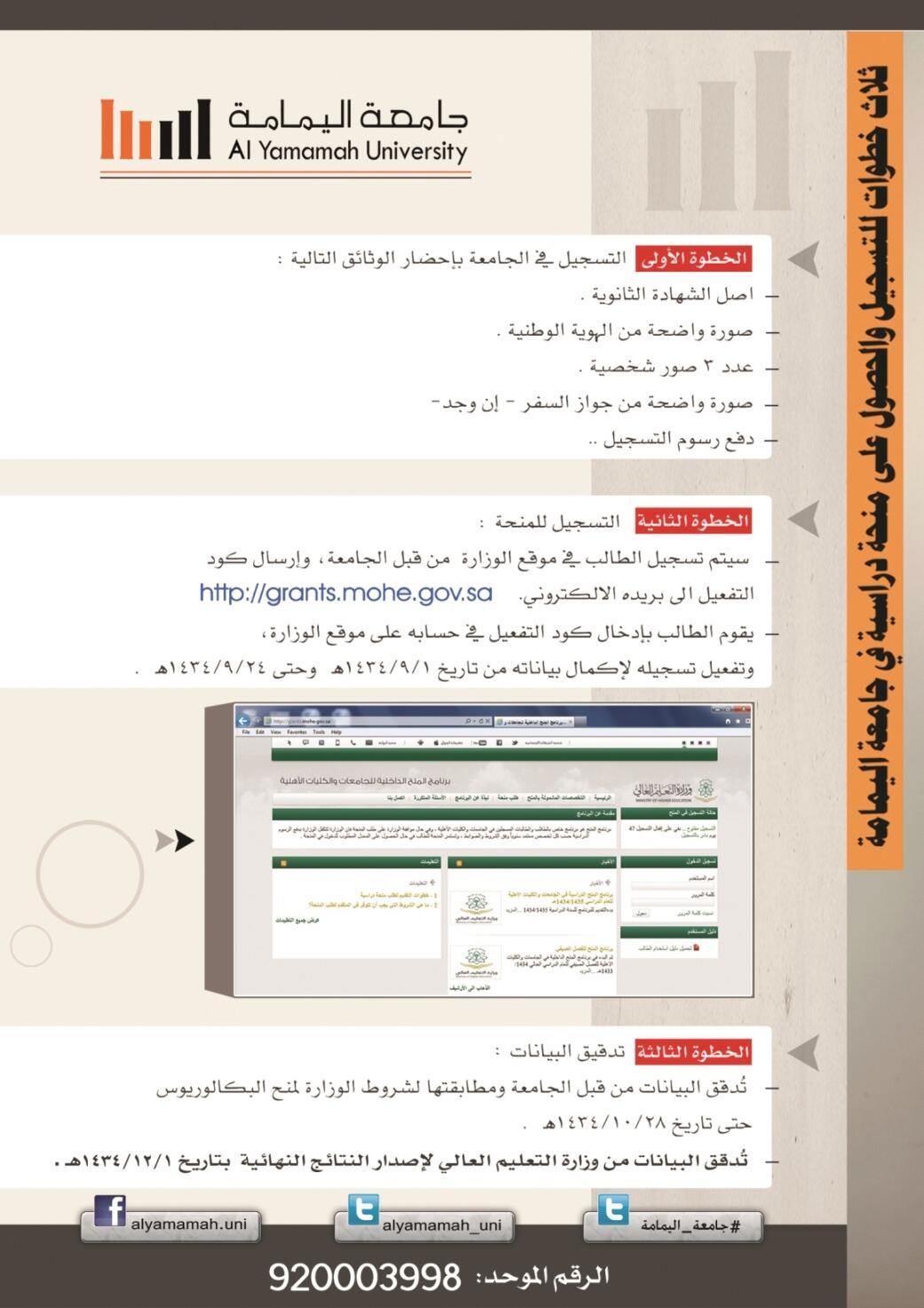 جامعة اليمامة On Twitter أمامك ثلاث خطوات فقط لتدرس في جامعة اليمامة وتحصل على منحة دراسية من وزارة التعليم العالي ابدأ الأن Http T Co Epzyjb52vr